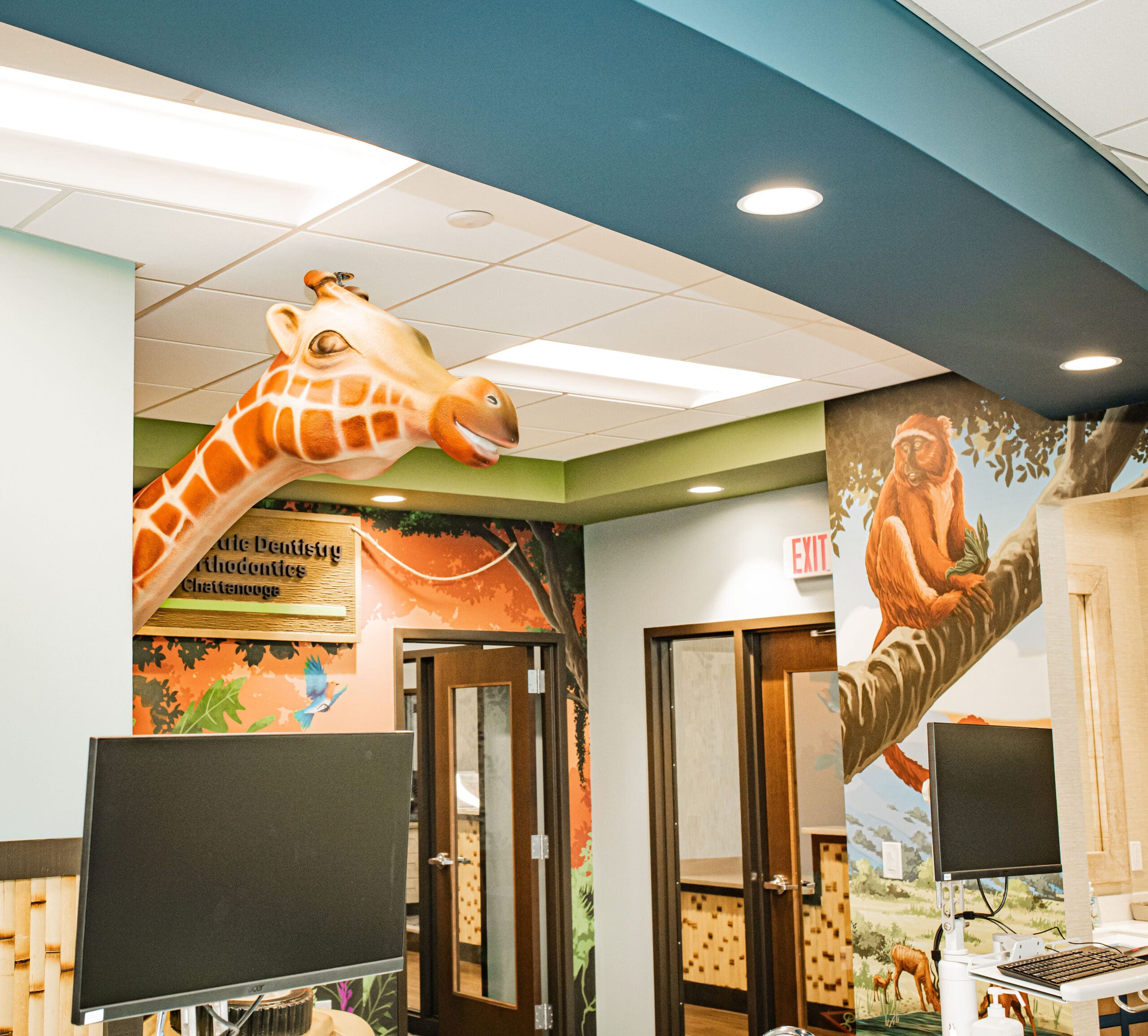 Our Pediatric Dentistry & Orthodontics of Chattanooga’s Cleveland pediatric dentistry and orthodontics office in TN conveniently offers both pediatric dentistry and orthodontic services! Take care of the whole family’s dental needs all in one place. Our jungle-themed pediatric dentistry space features colorful nature scenes and cartoon-like sculptures of animals straight out of a safari. This friendly setting is supported by the smiles of our team as we make this encounter a pleasant time your child can’t wait to revisit. Meanwhile, kids, teens and adults alike can visit our Cleveland pediatric dentistry and orthodontics office for expert orthodontic care in order to achieve their dream smile.